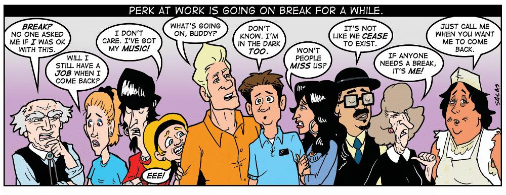 […] it to signify that I was taking a break from drawing comics. I did it again in another strip called “Break Time.” It’s a bit of a bear to keep these things going, especially when life and work are pulling […]