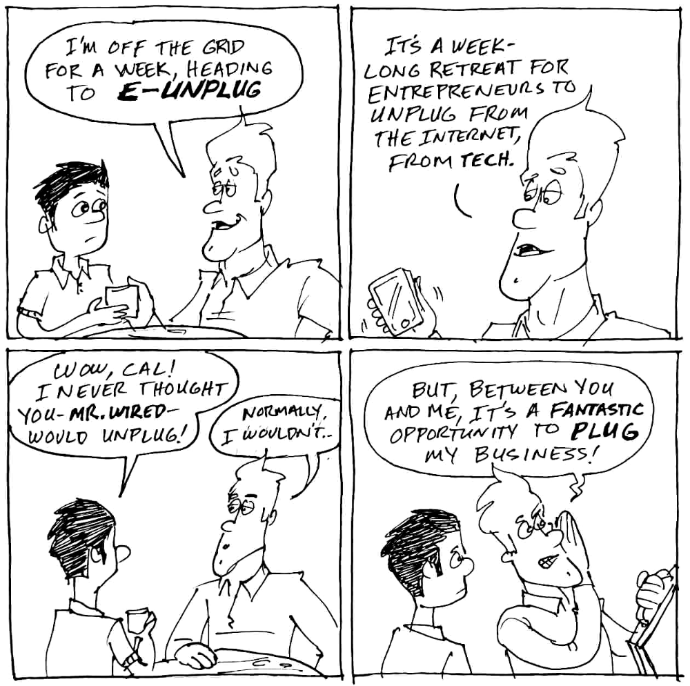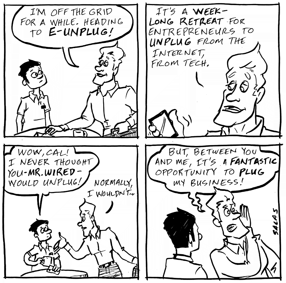 The strip above is a reworking of the strip below. It was the actual first strip I drew after my hiatus, but I drew it quickly on a piece of copy paper just to see what a quick strip would look like. This is what it looks like: