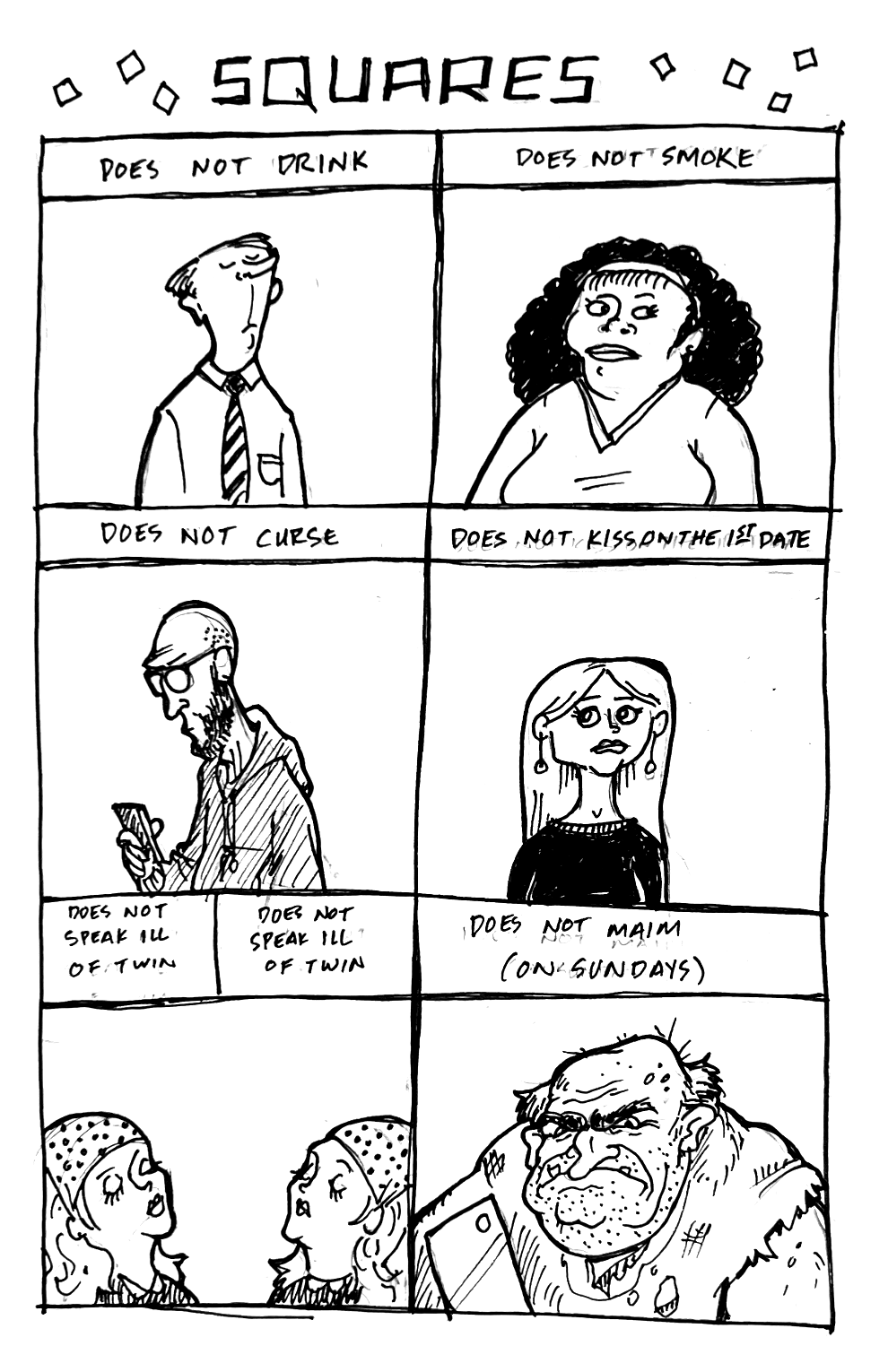 I haven’t always been a square. The strange thing is that I was a square when I was a kid, all the way up until I graduated high school. Then I wasn’t a square. Then I became a square again. I don’t drink, smoke, cuss, or anything else that would round my corners.