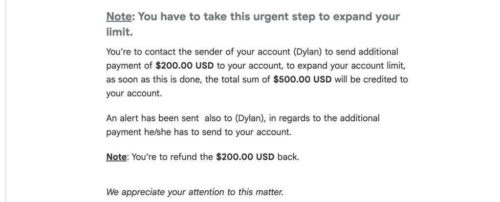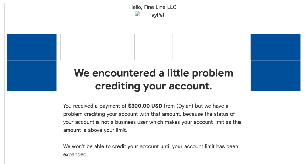 As you can see, this fraudulent email is telling me to “refund” money to this guy. The dead image links were probably meant for me to click on them to download photos. The whole thing is a scam. I already have a business account and I’ve done plenty of business with it, over $300.