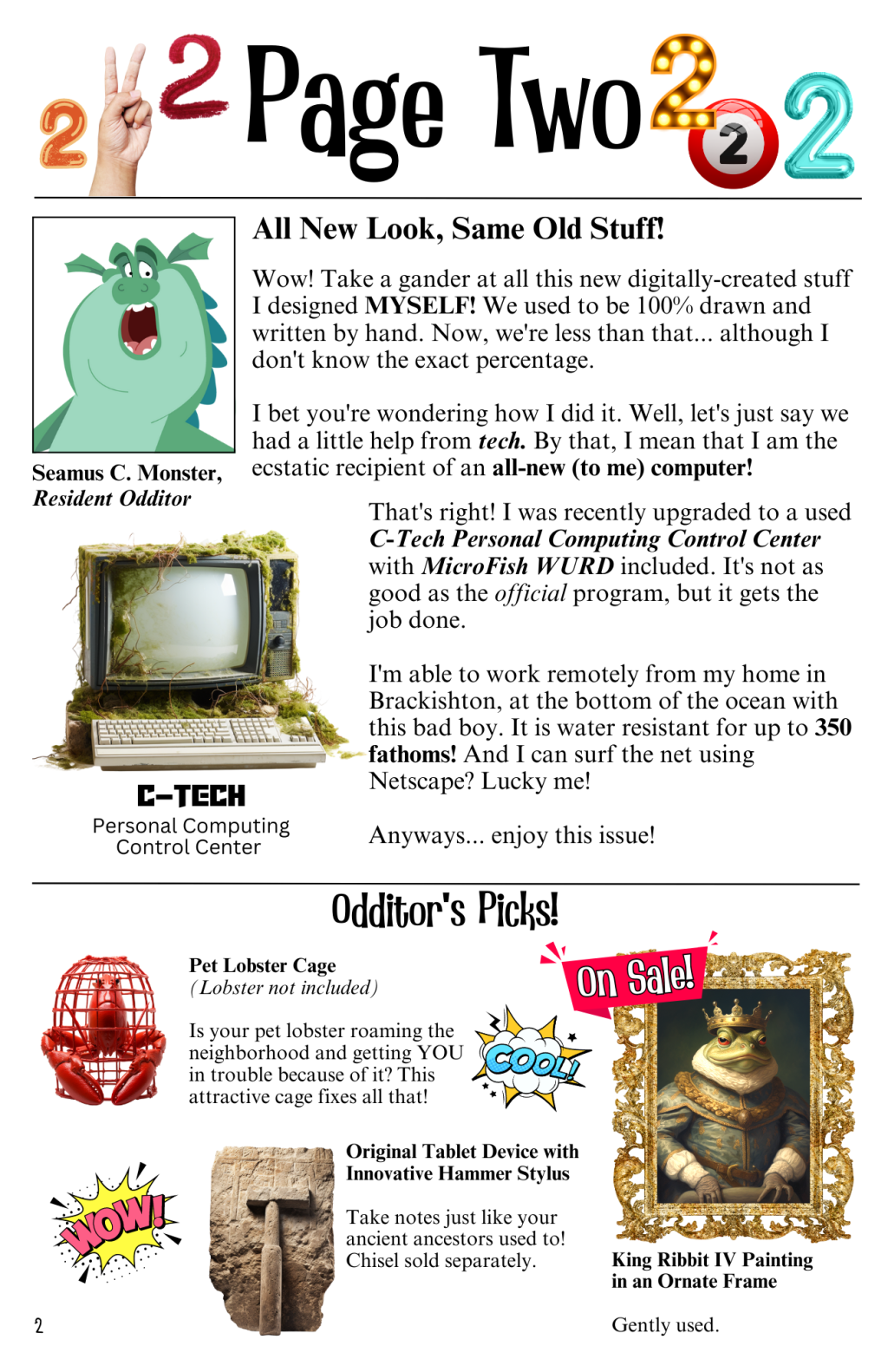 Our resident Odditor, Seamus C. Monster invites you to dive deep into this month’s issue of Oddballs. He encourages you to do that because he himself is deep… down in the murky waters, in a dense saline pool on the ocean floor. We communicate with him via a long ethernet cable wrapped in shark-proof nylon.