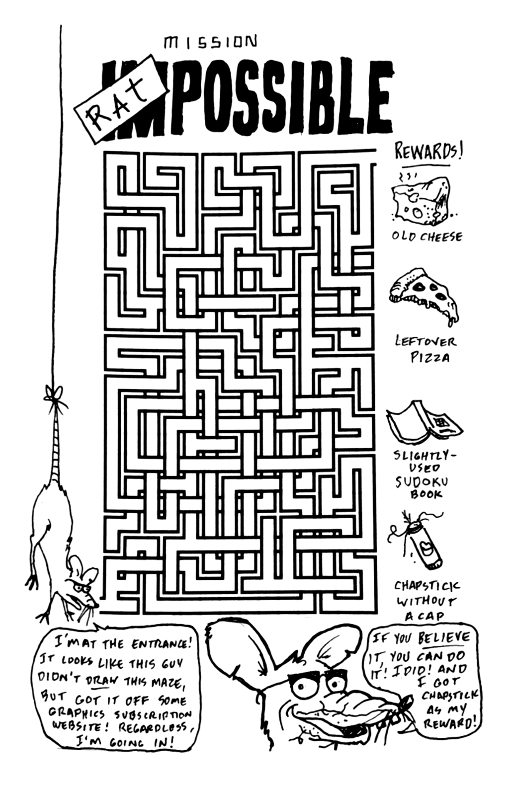 I got the maze from Creative Fabrica. There’s a ton of stuff there. It’s amazing! Full disclosure, I haven’t tried to finish the maze myself so I have no idea how hard it is. But it looks cool and it works with the comic so that’s that.