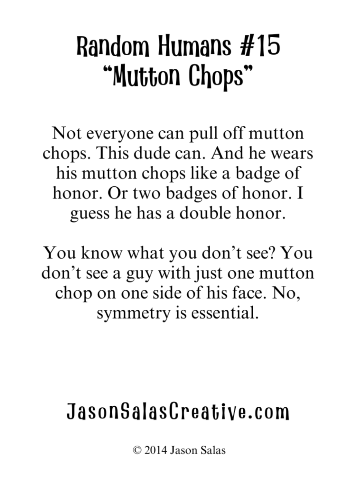 You know what you don’t see? You don’t see a guy with just one mutton chop on one side of his face. No, symmetry is essential.
