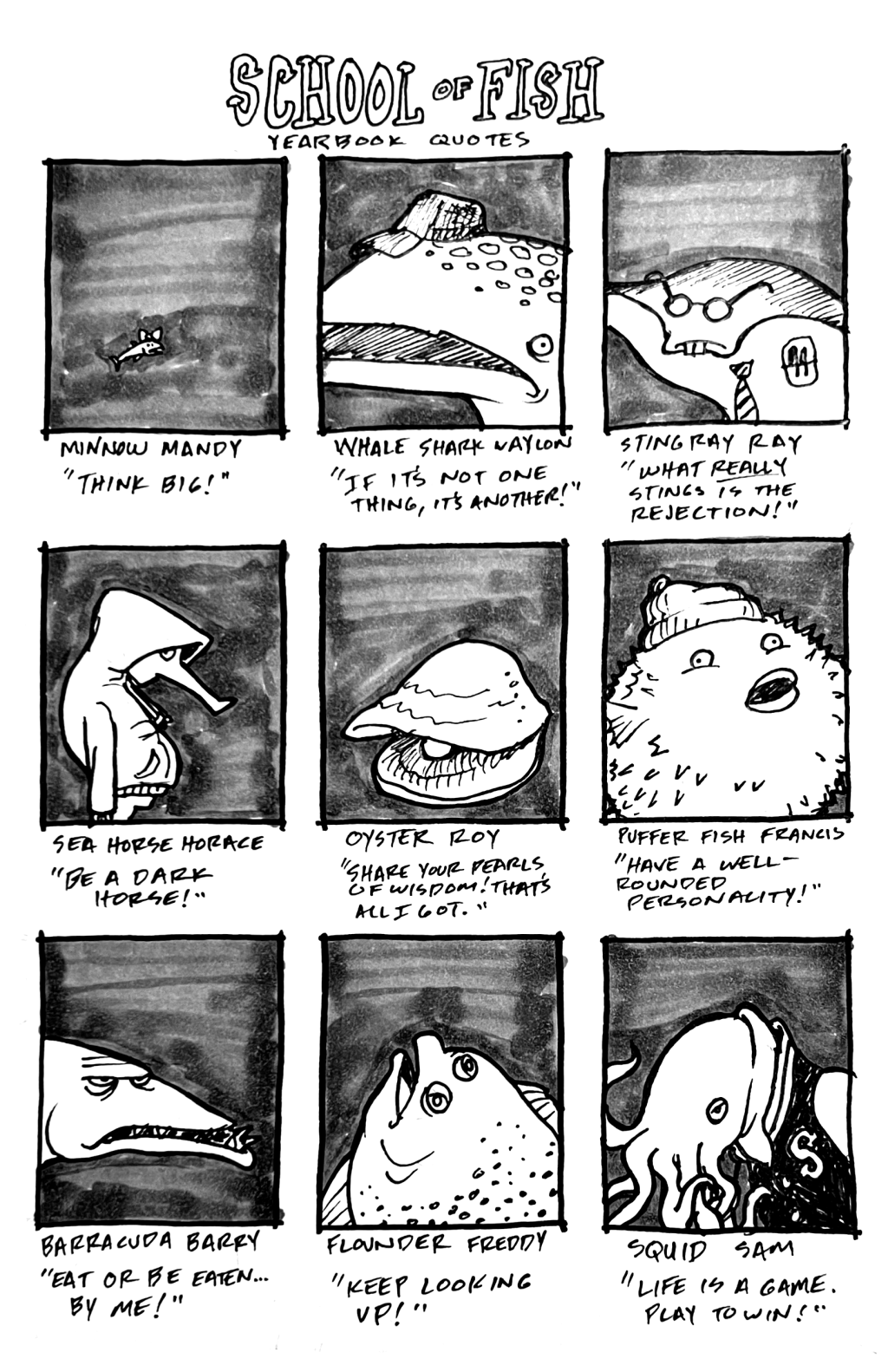 When I was in high school, they only let the seniors have a quote. When I was a senior, my quote was an answer to a prompt given by the yearbook staff: “How do you want your classmates to remember you?” My reply was something about them remembering me as being “svelt”; I was the fat kid all through school until my junior year when I lost a ton of weight. The other kids probably just remember me as that kid who drew goofy pictures all the time… if they remember me at all.