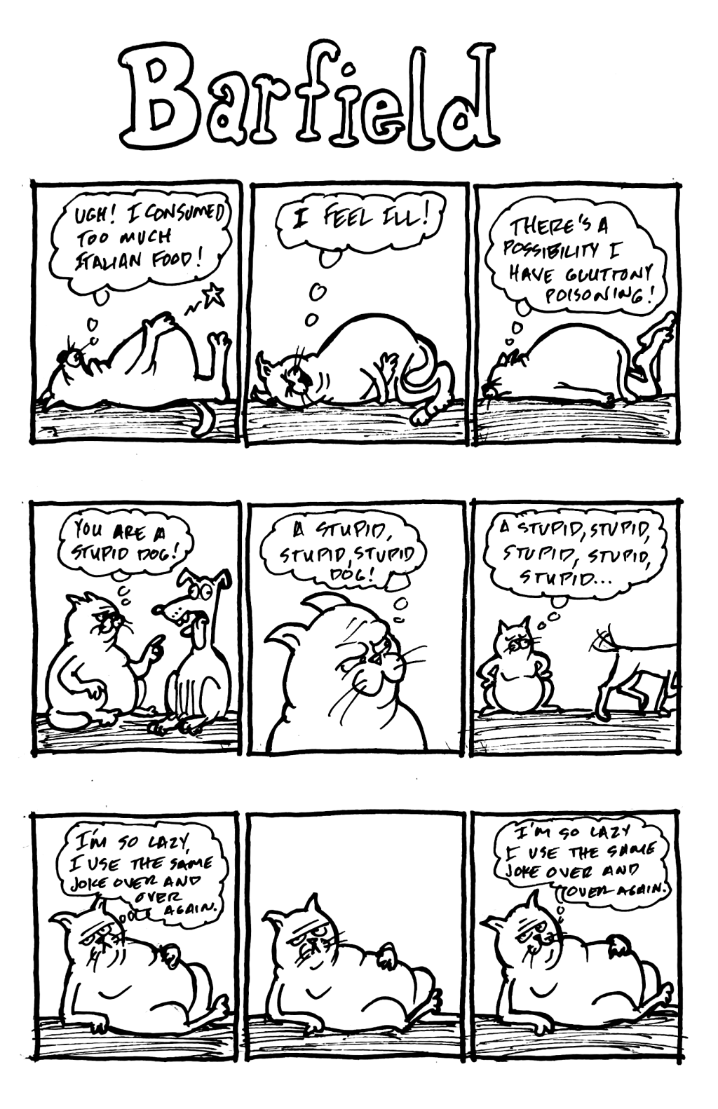 It’s no secret what this comic is satirizing. That said, I was a HUGE Garfield fan when I was a kid. I loved everything about that comic strip! I remember having a few of the books as a kid and coloring them with colored pencils. I also remember seeing the book Garfield: His 9 Lives and wanting it but thinking it would be too outlandish to ask my parents to get it for me – it seemed too much of a luxury. Looking back, I should have asked. Who knows? They may have gotten it for me.