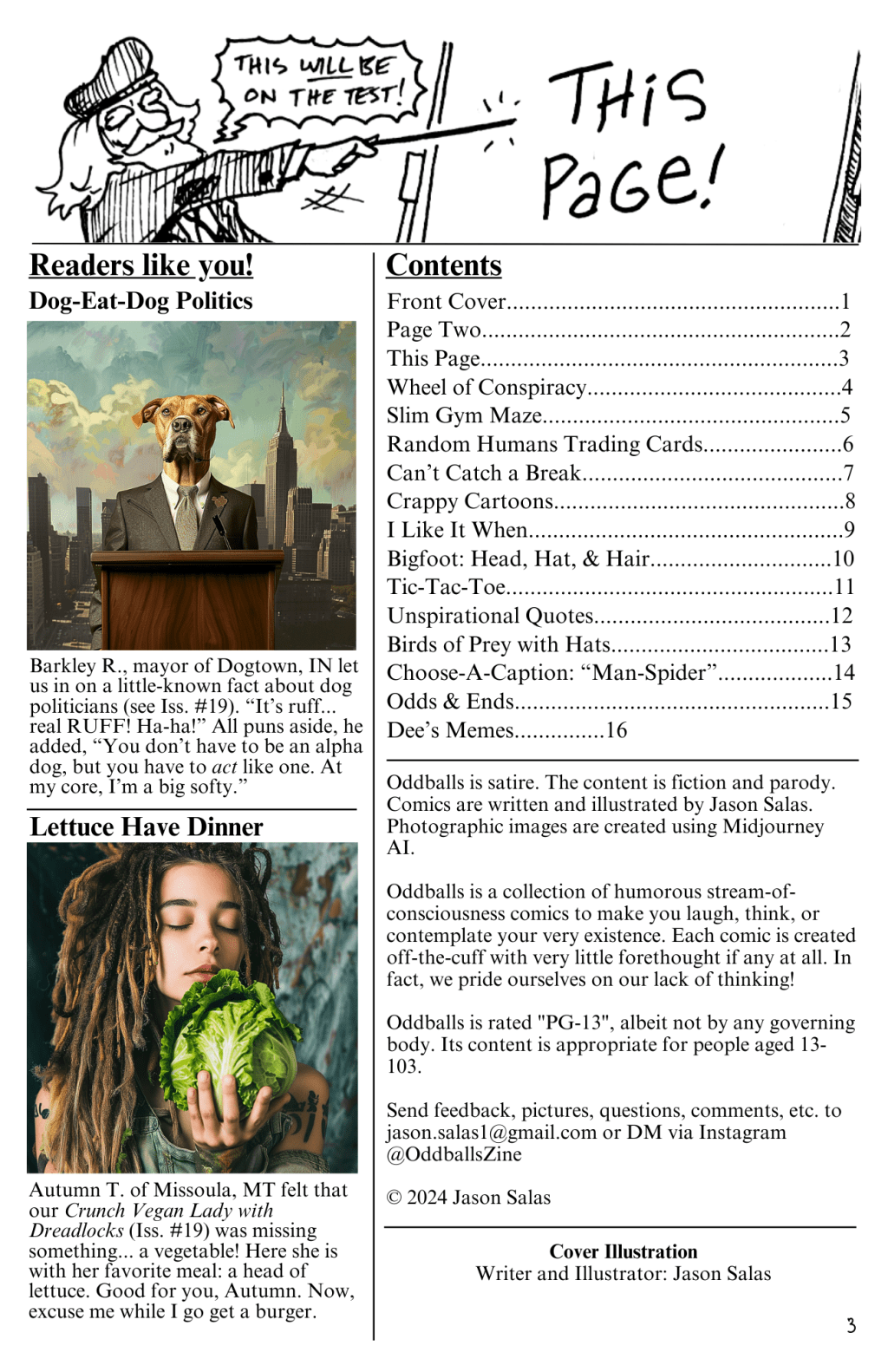 Oddballs is satire. The content is fiction and parody. Comics are written and illustrated by Jason Salas. Photographic images are created using Midjourney AI.