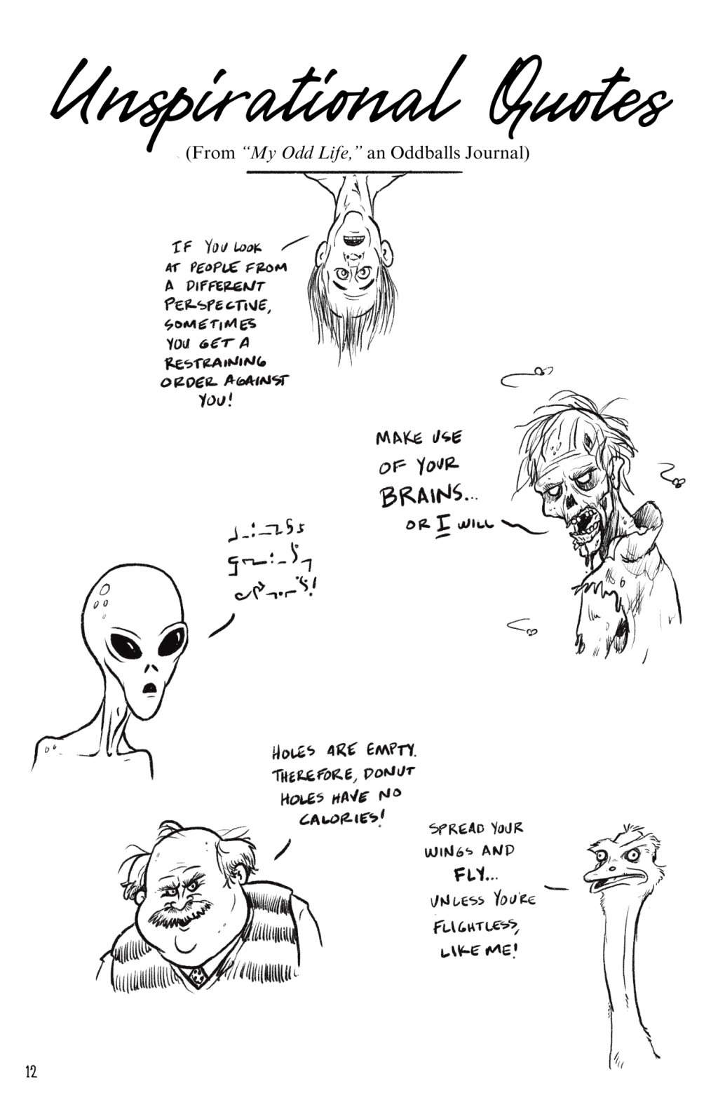 “Unspirational Quotes” from “My Odd Life,” an Oddballs journal #oddballs #humor #comics #journaling #inspirationalquotes #satire