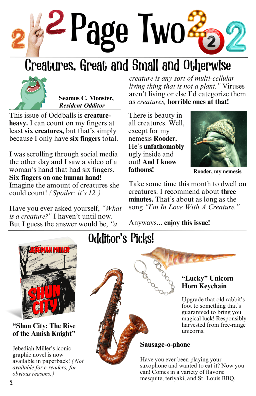 This issue of Oddballs is creature-heavy. I can count on my fingers at least six creatures, but that’s simply because I only have six fingers total.