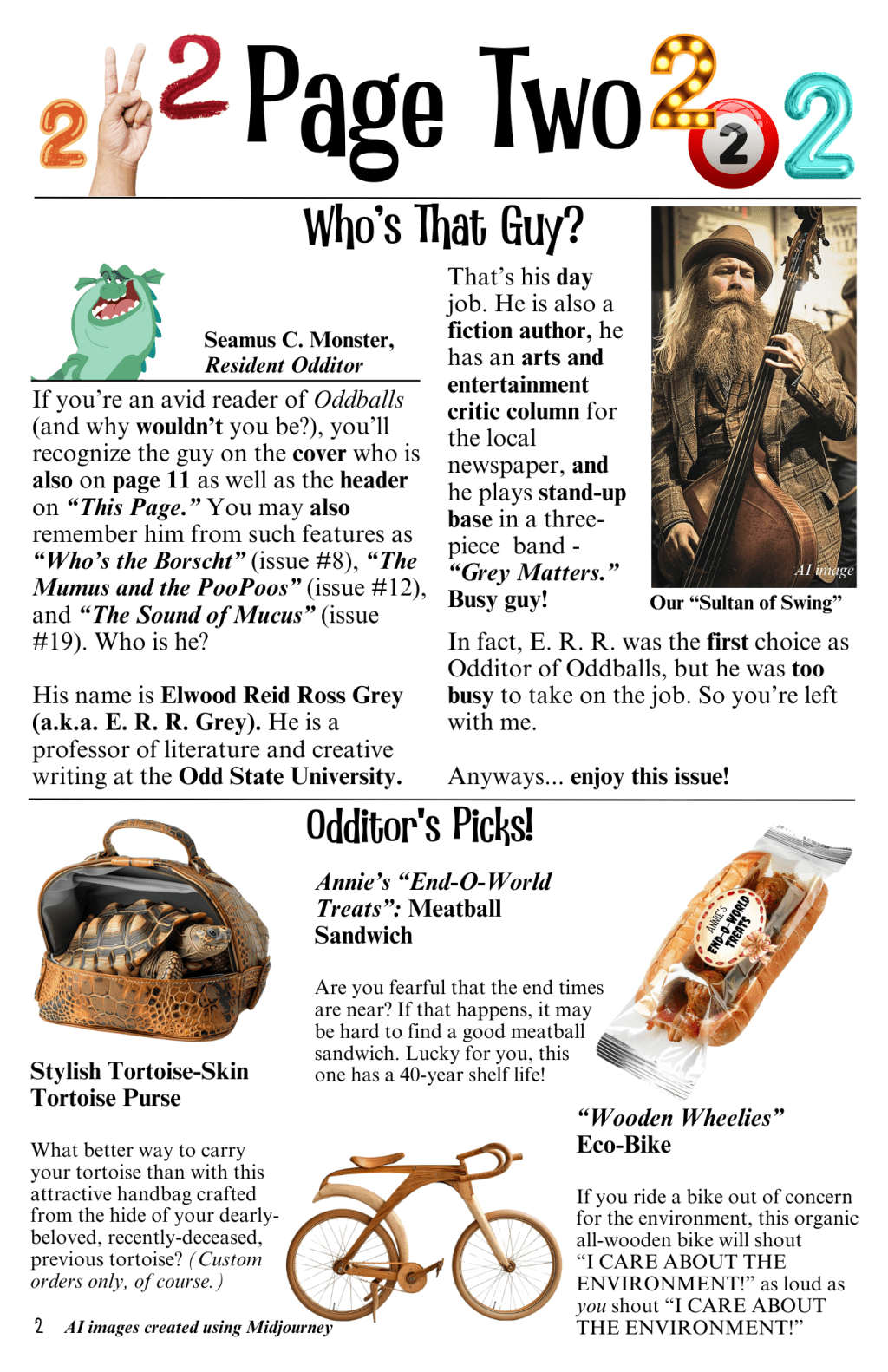 If you’re an avid reader of Oddballs (and why wouldn’t you be?), you’ll recognize the guy on the cover who is also on page 11 and the header on “This Page.” You may also remember him from such features as “Who’s the Borscht” (issue #8), “The Mumus and the PooPoos” (issue #12), and “The Sound of Mucus” (issue #19). Who is he?