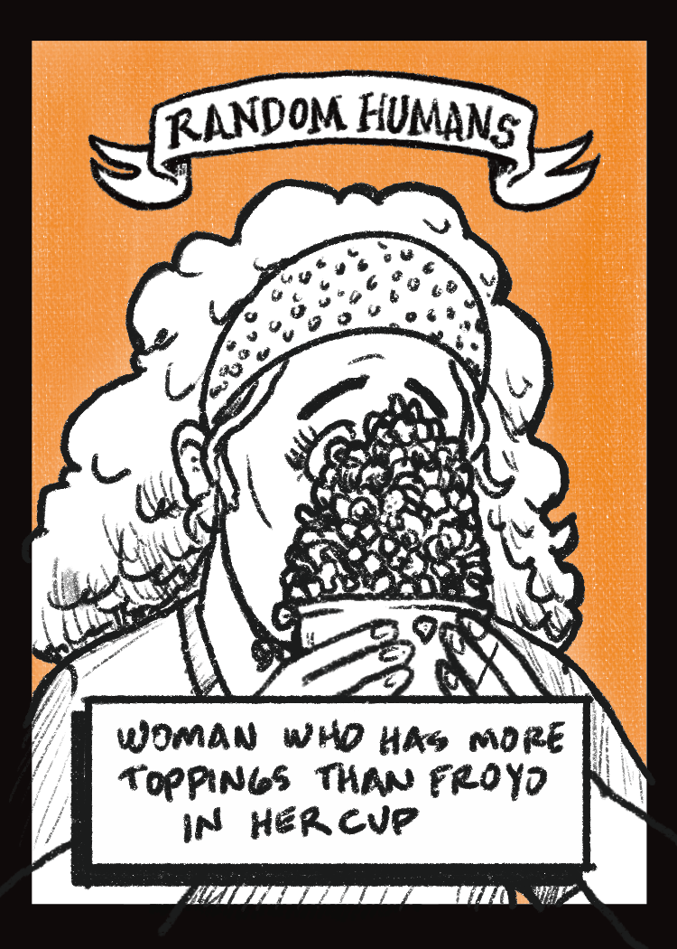 Beneath that mountain of cookie crumbles, fruit, gummy candy, sprinkles, and other miscellaneous toppings, sits a dollop of froyo. It’s more of a formality, to be honest. After all, by the time she gets to the froyo, it’s melted. But she doesn’t care about that, not when she has toppings.