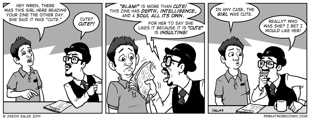 He’s intelligent and insightful and more people would know that if he weren’t so pedantic. Wren is a humorist and cartoonist who is smart enough to know he shouldn’t quit his day job because “such an act would not be advantageous considering both endeavors can be pursued in tandem.”